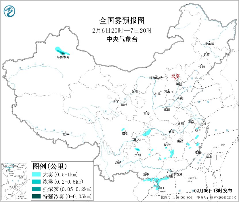 预计,2月6日夜间至7日白天,北部湾北部沿岸海域、琼州海峡、粤西沿岸海域将有能见度不足1公里的大雾。另外,夜间至上午时段,新疆北部、湖北西南部、贵州中部、湖南南部等地的部分地区有大雾,其中新疆北部局地有能见度不足200米的强浓雾。